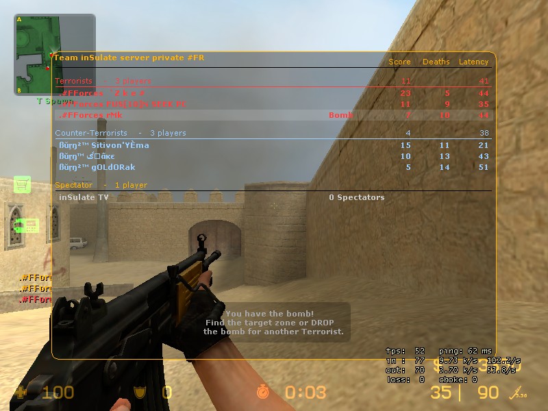 | Map : | de_dust2 ct (6-9) de_dust2 t (11-4) |